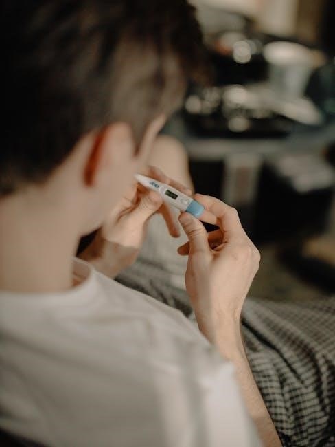 Understanding fever ranges is essential for assessing your child’s health. Generally, a low-grade fever ranges from 100.4°F to 102°F (38°C to 39°C), while a moderate fever is between 102.1°F and 104°F (39.1°C to 40°C). High fevers exceed 104°F (40°C) and may require immediate medical attention. The Safety 1st 3-in-1 Thermometer’s accurate readings help identify these ranges, allowing parents to monitor their child’s condition effectively. Fever thresholds can vary slightly based on age and measurement method, so it’s important to consult a healthcare professional for personalized guidance. Always use the thermometer in accordance with its instructions to ensure reliable results when assessing fever levels.